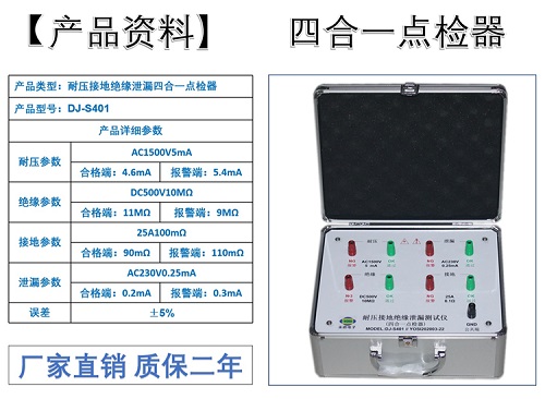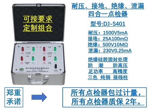 描述:四合一點(diǎn)檢器(耐壓+接地+絕緣+泄漏)任意參數(shù)隨意定制,自由組合,廠家直銷,質(zhì)保二年。